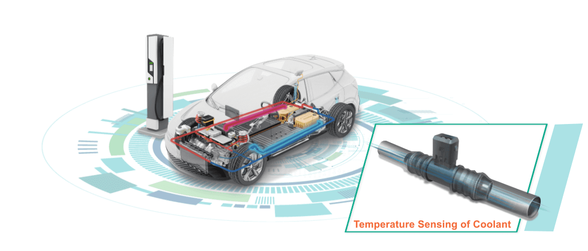 對電動車來說,冷卻系統(tǒng)在優(yōu)化電池和動力系統(tǒng)的效能上,扮演重要角色。由于液體冷卻方案具有高熱容量和導(dǎo)熱性,是目前許多電動車首選的熱管理解決方案。而準(zhǔn)確量測冷卻回路中的液體溫度,有助熱管理系統(tǒng)維持電池與其他部件的最佳運(yùn)作溫度。為滿足電動車對精準(zhǔn)量測溫度與節(jié)省整車空間的需求,興勤開發(fā)了一種緊湊設(shè)計的NTC溫度傳感器,提供調(diào)節(jié)冷卻回路溫度所需的精確數(shù)據(jù)。